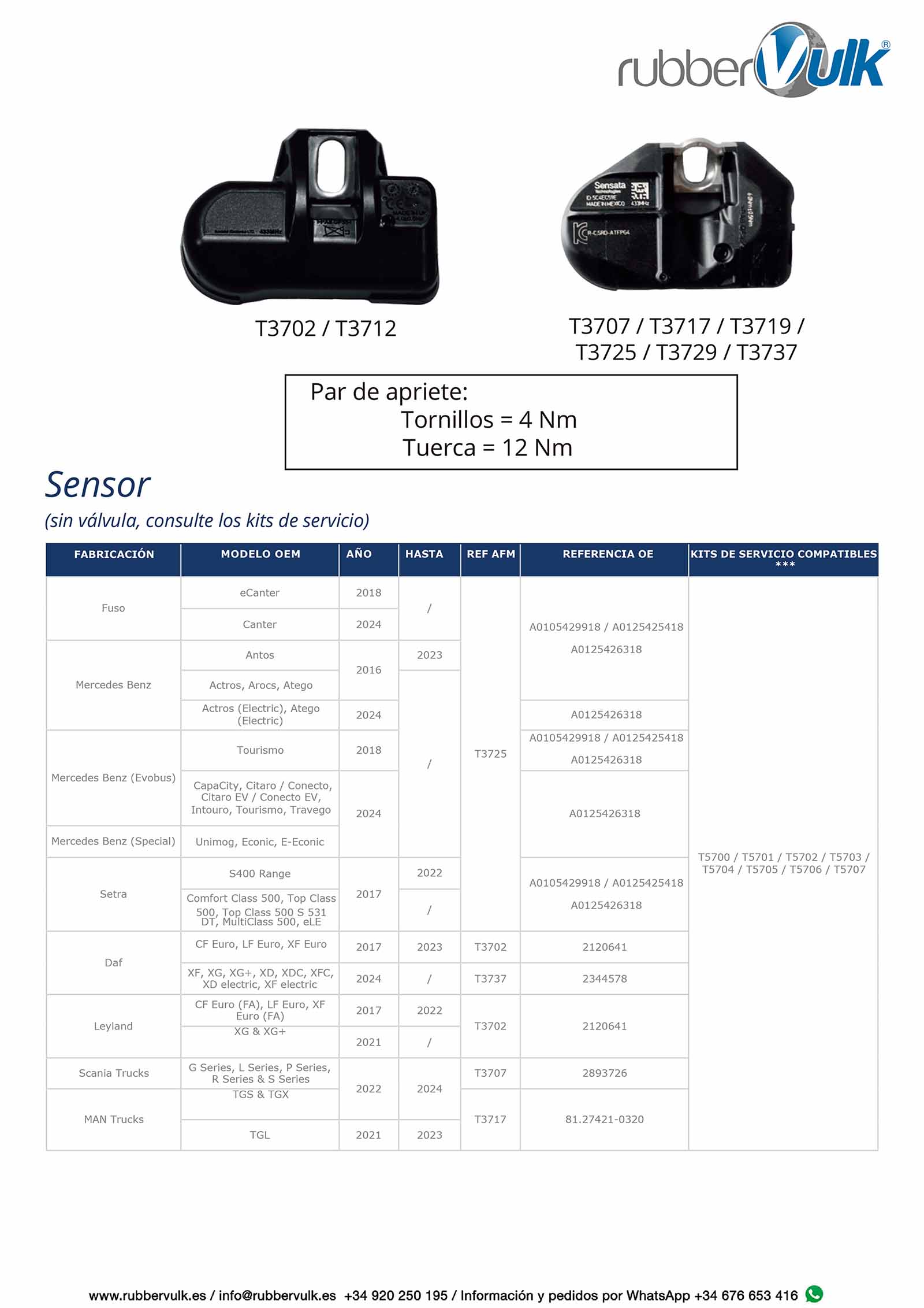 Catálogo y tabla de aplicación